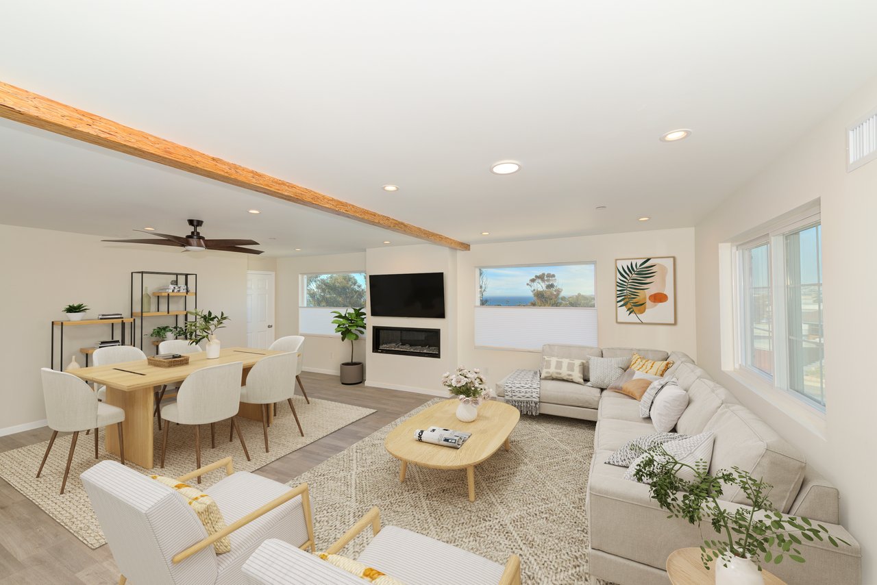 Welcome to your dream coastal retreat — a brand-new custom-built home perched in the hills of San Clemente, offering unrivaled, panoramic ocean views stretching from Catalina Island to the Dana Point Headlands. This extraordinary residence presents a rare opportunity to own a luxurious ocean-view home without HOA fees and no Mello Roos, just moments from the heart of downtown San Clemente. Imagine starting your day with a short stroll through the charming streets of the “Spanish Village by the Sea,” grabbing coffee from a local café, and walking to the beach — all within minutes of your front door. Step inside nearly 3,000 square feet of thoughtfully designed living space, where an open-concept great room welcomes you with soaring ceilings and natural light flooding through expansive 4-pane windows. The kitchen features shaker-style cabinetry, quartz countertops, a bar counter top with pendant lighting, and a walk-in pantry — all open to a warm and inviting living area with a fireplace and ocean views. This home offers remarkable flexibility with 4 bedrooms plus an office (or potential 5th bedroom) and 5 bathrooms, including a full bedroom suite with a separate entrance on the lower level — perfect for guests, in-laws, or a private workspace. Upstairs, the primary suite is a sanctuary in itself, boasting breathtaking ocean views, a private balcony for sunset-watching, an ensuite bathroom with dual vanities, and a spacious retreat area. Two additional ensuite bedrooms with walk-in closets offer comfort and privacy, while a bonus flex room upstairs provides even more options. Step out onto one of three outdoor balconies, including a massive 400 sq ft deck, ideal for entertaining under the stars or simply enjoying the ocean breeze. With rich plank flooring throughout, two fireplaces, recessed lighting, modern top-down/bottom-up window coverings, a highly efficient HVAC system, and a 2-car garage with extra driveway and street parking, this home effortlessly blends comfort, function, and style. Whether you're hosting friends for a summer barbecue, accommodating extended family, or working from your ocean-view home office, this residence offers everything you need in a premier location — just minutes from beaches, restaurants, shopping, highly rated schools, and vibrant community life. This is more than a home — it’s a lifestyle, and it's move-in ready. Modern Building Code Compliant.